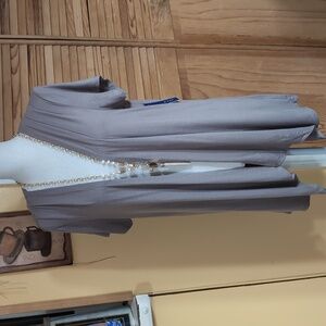 Brand new with tags chic taupe Apt. 9 open front lightweight cardigan. Short sleeves. Asymmetrical hem. It has crochet lace design on upper back. 95% rayon/5% spandex. Ideal for layering. Very cute.