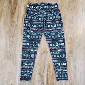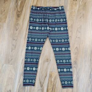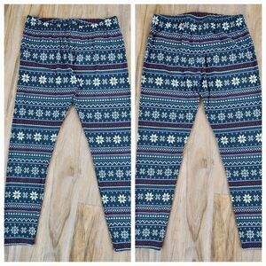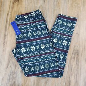 🔸️NWT Apt 9 Green w/Cream & Red Holiday Snowflake Print Leggings Medium