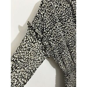 This beautiful Aqua Animal Print Smocked Mini Dress in size XS is perfect for any occasion. The dress features a V-neckline, long sleeves, and a pullover closure. The dress is made of lightweight chiffon material that is perfect for any season, whether it's summer, fall, winter, or spring. The dress is machine washable, making it easy to care for.The dress has a classic animal print pattern that is both stylish and timeless. It has ruffle and tasseled accents that add a touch of fun and excitement to the dress. The dress is lined and smocked, ensuring a comfortable and flattering fit. Whether you're attending a wedding, holy communion, or a party, this dress is perfect for any formal or business occasion.
