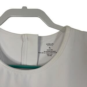 New With Tags Aqua Athletic Women's white workout training romper with dress overlay. There are a couple very light gray dust marks on the front. (see photos) They will probably come out with washing. I didn't wash it because it is new with Tags.