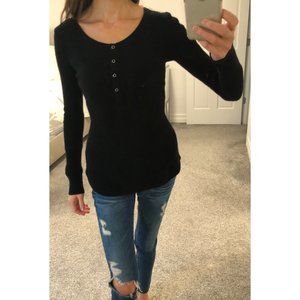 NWT Aqua Black Cashmere Henley Waffle Sweater - XS