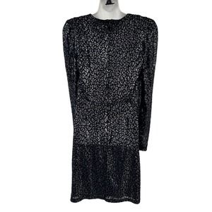 NWT Aqua Black Metallic Leopard Pattern Long Sleeve Dress Large