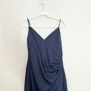 NWT Aqua Bloomingdale's Navy Ruched Vneck Gown Size 12