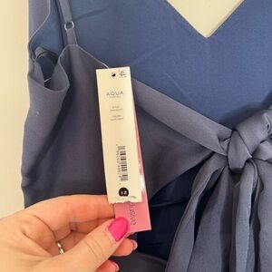 NWT Aqua Bloomingdale's Navy Pleated Vneck Gown Size 12