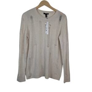 NWT Aqua Cashmere Distressed Crewneck Sweater in Ash. Comes with extra thread.