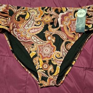NWT Aqua Couture Swimsuit Bototm. Curvy Size 2X. Black with a Paisley printm