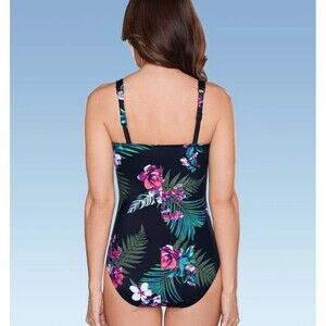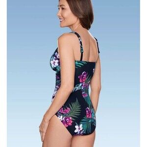 NWT Aqua Green Size Small Tropical Floral Waist Detail One Piece Swim Suit