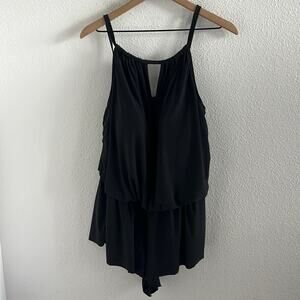 From the brand: Whether you're planning a day in the water or simply plan to relax in the sun, you'll love to slip into the High-Neck Swim Romper with Pockets from Aqua Green. Designed in the shape of a romper with a high neckline and a cute keyhole accent in front, this one-piece romper swimsuit can be used as a casual swim outfit during your next beach vacay. The strappy design allows for an adjustable fit, while the removeable cups offer added comfort and coverage to suit your style. Plus, you'll love the functional side pockets that come in handy to keep essentials nearby.