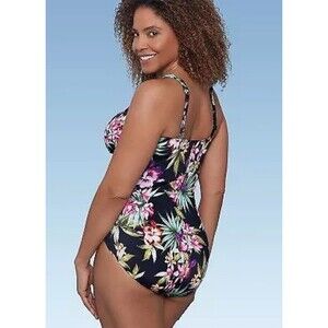 Women's UPF 50 V-neck Ruched One Piece Swimsuit - Shape & Style by Aqua Green Multi Floral Print Size 8
