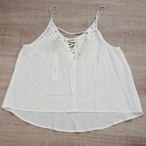 NWT Aqua Ivory Blouse Tank Top Lace Up Tie Adjustable Straps Size Medium