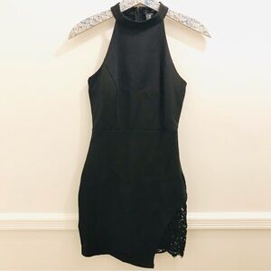 NWT Aqua Lace Cutout Dress small black Bodycon halter little black dress