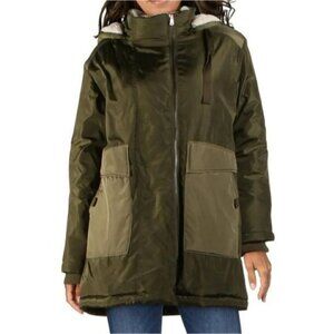NWT Aqua Puffer Coat Anorak Army Green Hooded Coat Size S