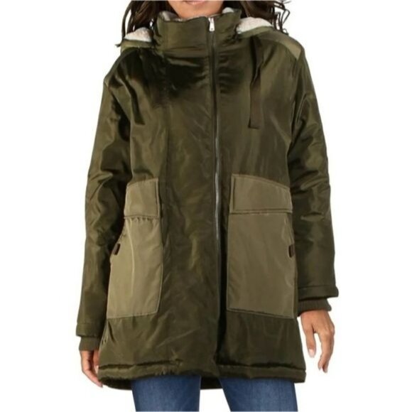 NWT Aqua Puffer Coat Anorak Army Green Hooded Coat Size XS