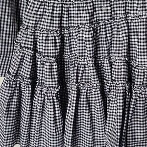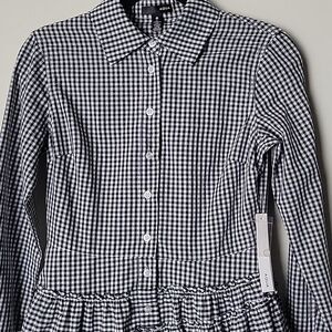 NWT Aqua S Gingham Shirt Dress Fit Flare Retro Tiered Ruffle Plaid Long Sleeve