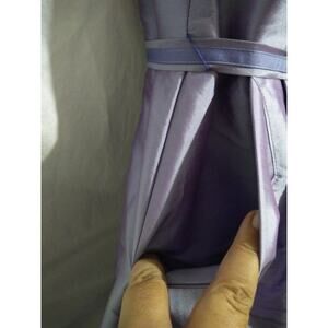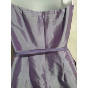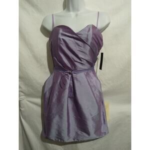 Gorgeous brand new formal from aqua dresses in size xs. This knee length formal is made from 100% silk on the exterior and lined in 100% polyester. It is sleeveless and features tiny spaghetti straps over the shoulders and flows into a draped sweetheart neckline. This light draping continues to the waist where there is an attached coordinating color belts before flaring out gently into a slight bubble skirt. This dress has two slit pockets one on either hip. The skirt falls about 16 in from the waist to the Hem and from the top of the shoulder strap to the Hem is about 30 in total. The waste is about 25 in and the chest measurement is about 30 in. What I love most about this dress besides it's silky texture is it delicate feminine color. It's a beautiful lavender color that has a Sheen to it so it looks like it's been iced. Please see photos for details.