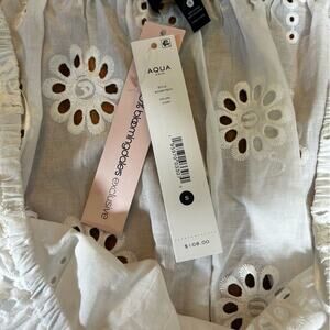 NWT Aqua Swim Ivory White Cotton Eyelet Floral Peasant Off The Shoulder Dress