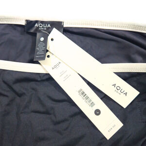 ● A cool pinup vibe is all yours every time you rock this AQUA bikini, a retro remix featuring contrast details and a flattering fit.