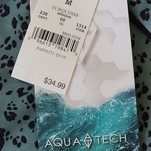 NWT Aqua Tech Long Sleeved Turquoise Print Sun Protection Swim Top Mediium