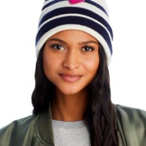 NWT Aqua X Kerri Rosenthal Heart Patch Striped Beanie OS