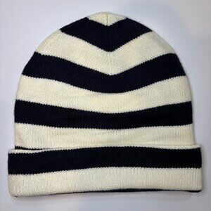NWT Aqua X Kerri Rosenthal Heart Patch Striped Beanie OS, 1.5 inch cuff, Appliqued heart Patch, 80% Rayon/20% Nylon, Machine wash