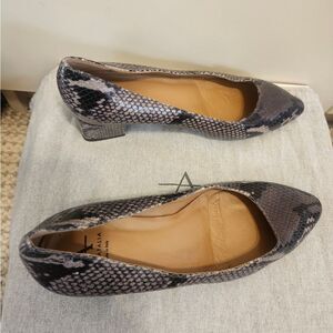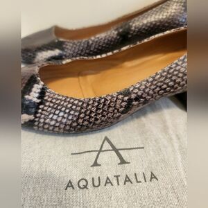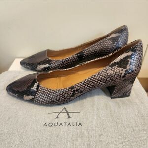 NWT Aquatalia "Pasha" Blk/Gry Python Print Leather Sq. Heel Pumps Sz.7 Ret. $350