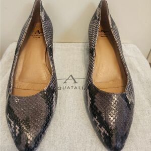 Aquatalia "Pasha" Blk/Gry Python Print Leather Sq. Heel Pumps