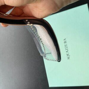 NWT Aquazzura Ray Of Light Sandals Plexi Crystal Peep Toe 105 Black Suede/PVC
