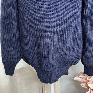 NWT Aran Sweater Market 100% Wool Turtleneck Chunky Knit Navy Blue Size Medium