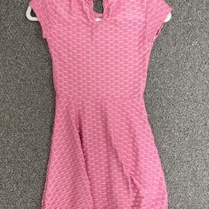Pink T Shirt dress with honeycomb pattern. So soft and comfortable. Easy to wear!