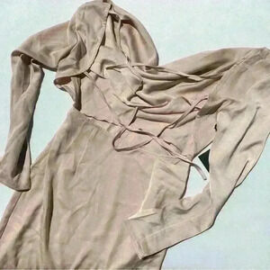 NWT Area Stars Cowl Neck Long Sleeve Satin Midi Dress Backless Size S