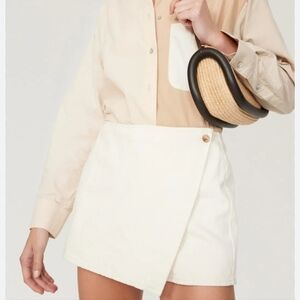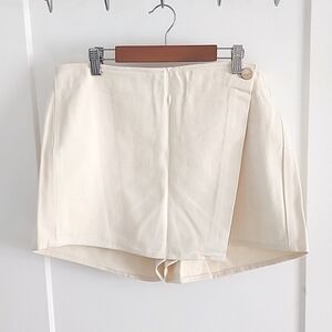 Off-white twill (100% Cotton). Skort. Front button closure. 4" rise. Imported.