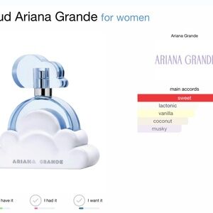 Cloud by Ariana Grande is a Floral Fruity Gourmand fragrance for women. Cloud was launched in 2018. The nose behind this fragrance is Clement Gavarry.