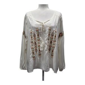 NWT Ariat Marrakesh Embroidered Boho Peasant Blouse Papyrus Cream Size M