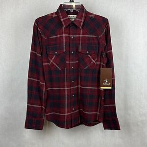 NWT Ariat Retro Fit Snap Button Shirt Men’s Heath Size XS Plaid Long Sleeve