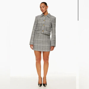 Brand new. Sold out at Aritzia and everywhere online - this is the only place you can find it. Retails $198. Color is called SOLANGE MLG BLK/WHT. Grey with gold buttons.