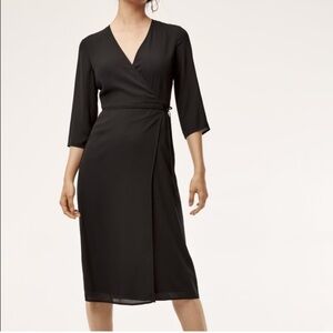 NWT Aritzia Babaton Theo Black Midi Wrap Dress Size XS