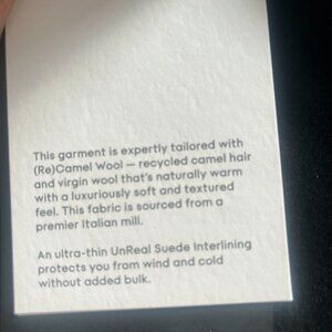 Meticulously crafted to deliver warmth to -20°C / -4°F, this is a double-breasted coat with a peaked lapel, welt hand pockets and an ultra-thin UnReal Suede Interlining for added warmth and wind protection. It’s expertly tailored with (Re)Camel Wool — 25% recycled camel hair and virgin wool fabric that’s naturally warm with a luxuriously soft and textured feel. This fabric is sourced from a premier Italian mill.