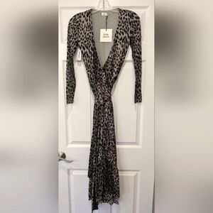 New dress animal Cheetah print Wrapper's delight This is a long-sleeve, wrap-front dress with a V-neckline and a self-tie at the waist. It's made from mesh fabric with soft drape. It comes in an animal print