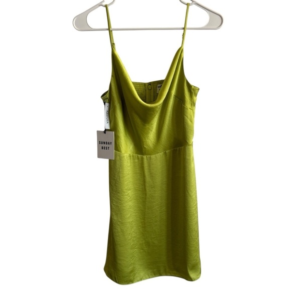 NWT Aritzia Sunday Best Spencer Satin Mini Dress, Pear Green, Size S