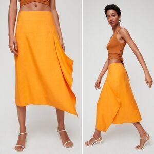NWT Aritzia Wilfred Autier Tuscan Sun Midi Skirt 00 Yellow Ruffle