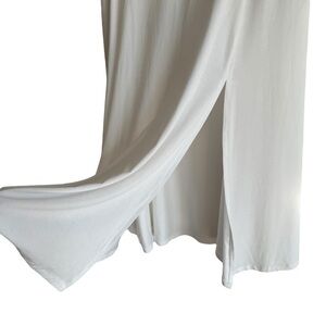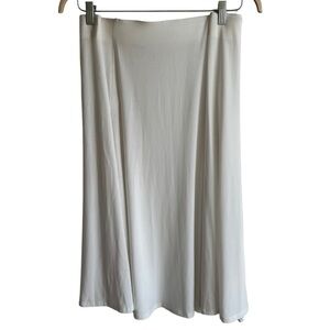 Simple white a-line midi skirt from Aritzia. This is new with tags- never worn or washed. Please note there are a few marks on it from being in the store (see second to last pic) that will def come out with a wash. There is also a small snag where the tag is (see last pic) but this is not a true hole and it's on one of the side front seams so it's not remotely noticeable.