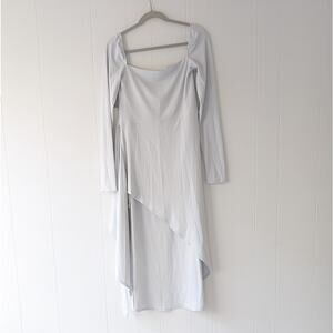 NWT Aritzia Wilfred Saturn Long Sleeve Gray Faux Wrap Midi Dress, size L