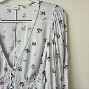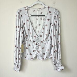 NWT Aritzia Wilfred Spellbound Blouse White Grey Floral