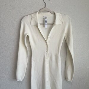 NWT Aritzia Wilfred Womens Cove Ribbed Button Down White Dress Boho Minimal