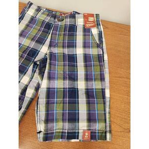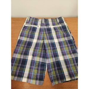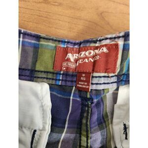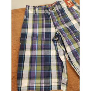 NWT Arizona Boys Purple Blue Plaid Flat Front Shorts, Sz 16 regular