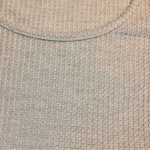 Cream colored shirt with a Textured fabric with a Knit Design. Peplum Top with a cute ruffled hem.