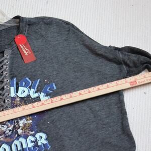 Cozy meets cool in this NWT lace-up front sweatshirt from Arizona Jean Co. in heather charcoal gray. Features bold “INVINCIBLE DREAMER” text with celestial-inspired eagle graphics and silver grommet lace-up neckline. Soft and lightweight—perfect for laid-back layering or loungewear with a statement.