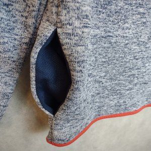 1/4 snap-collar pullover sweatshirt. Space-dye navy heather with orange enhancements (snaps, accent trim).