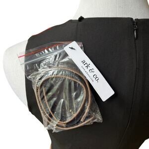 NWT Ark & Co. color block dress in red, black, tan, white. Size S. Striking color block red black tan white. Front inward pleat. Geometric colorblock dress with belt. Dress it up with chunky jewelry and black pumps. Professional and unique. New with tags.