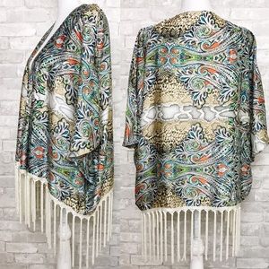 NWT Ark & co. | Bohemian Snake/ Paisley Print Fringe Kimono M